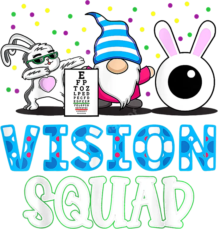 Vision Squad DTF Transfer | Funny Eye Care Gnome & Bunny Design