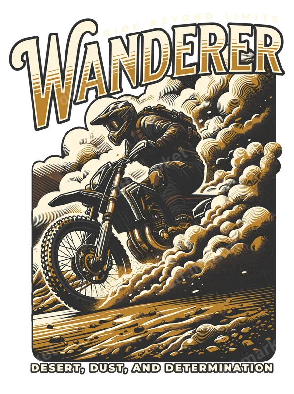 See allThis dynamic "Wanderer" DTF transfer captures the thrilling spirit of off-road adventure. It showcases a motocross rider in full gear, kicking up a dramatic cloud of dust against a rugged desert backdrop. Featuring vintage typography and empowering slogans "RIDE BEYOND LIMITS" and "DESERT, DUST, AND DETERMINATION," it evokes freedom, resilience, and exploration. This ready to press transfer is perfect for embracing the thrill of the ride and open trail. Ideal for motocross enthusiasts, dirt bike riders, adventure seekers, and outdoor lovers. This unique heat transfer makes an excellent gift for birthdays, Father's Day, or to celebrate a passion for extreme sports. It's also perfect for small businesses creating custom apparel for riding clubs, events, or merchandise for an independent spirit. Our direct to film transfer technology ensures flawless application on cotton, polyester, and various blends. For best results, apply with a heat press at 300-325°F for 15 seconds with medium pressure, then cool peel. While a heat press is recommended, this versatile iron on transfer can also be applied with a household iron (follow instructions). Enjoy no weeding or masking required. Experience superior quality with our professional DTF transfers. Each design boasts vibrant colors, crisp details, and exceptional durability, ensuring it won't crack, peel, or fade with washing. The advanced DTF film provides a soft, flexible feel that seamlessly integrates with the garment, making your finished product comfortable and impressive. This apparel transfer delivers professional-grade results.