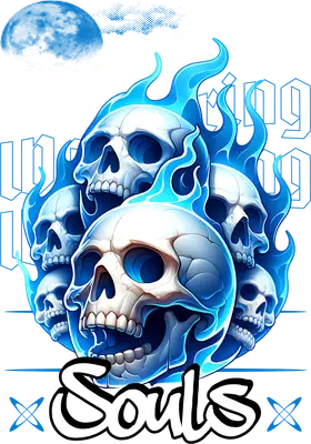 Wandering Souls Blue Flame Skull DTF Transfer | Edgy Gothic Apparel Design