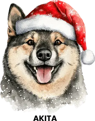Watercolor Akita Dog Santa Hat Christmas DTF Transfer