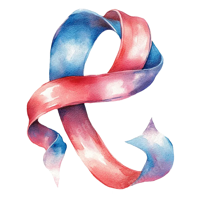 Watercolor Ampersand DTF Transfer - Artistic Blue & Pink Ribbon Design
