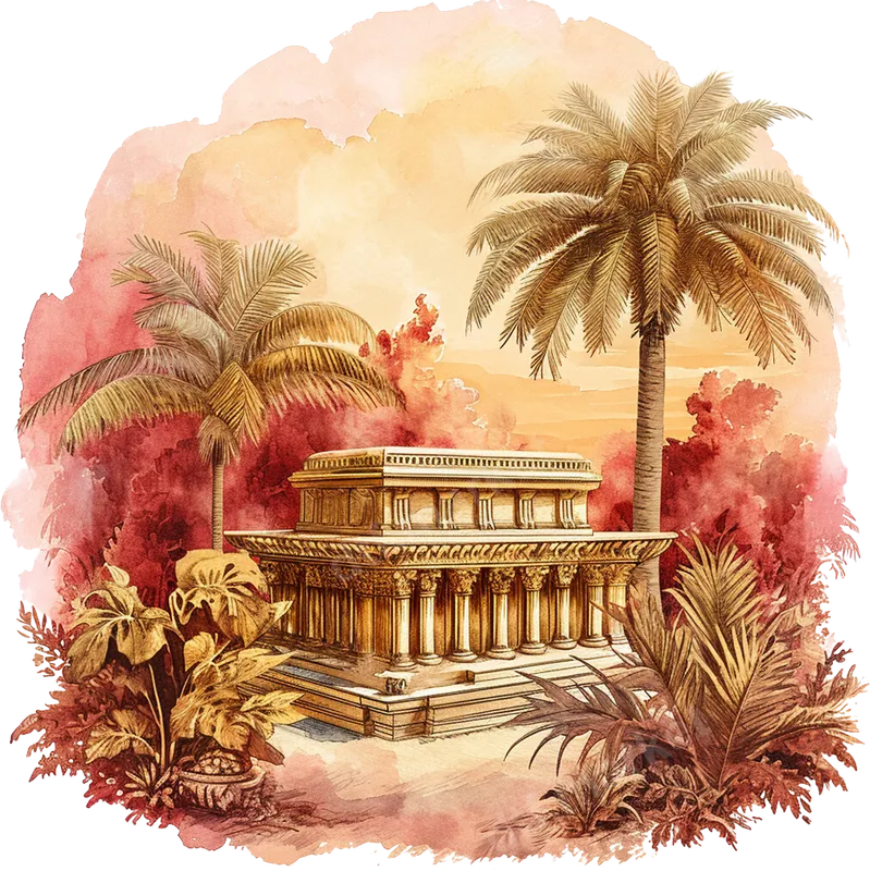 Watercolor Ancient Temple Tropical Palms DTF Transfer
