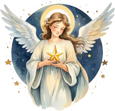 Watercolor Angel DTF Transfer with Star | Christmas Heavenly Design