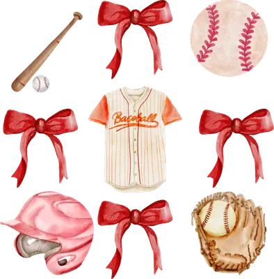 Watercolor Baseball & Red Bows DTF Transfer | Sports Mom Apparel