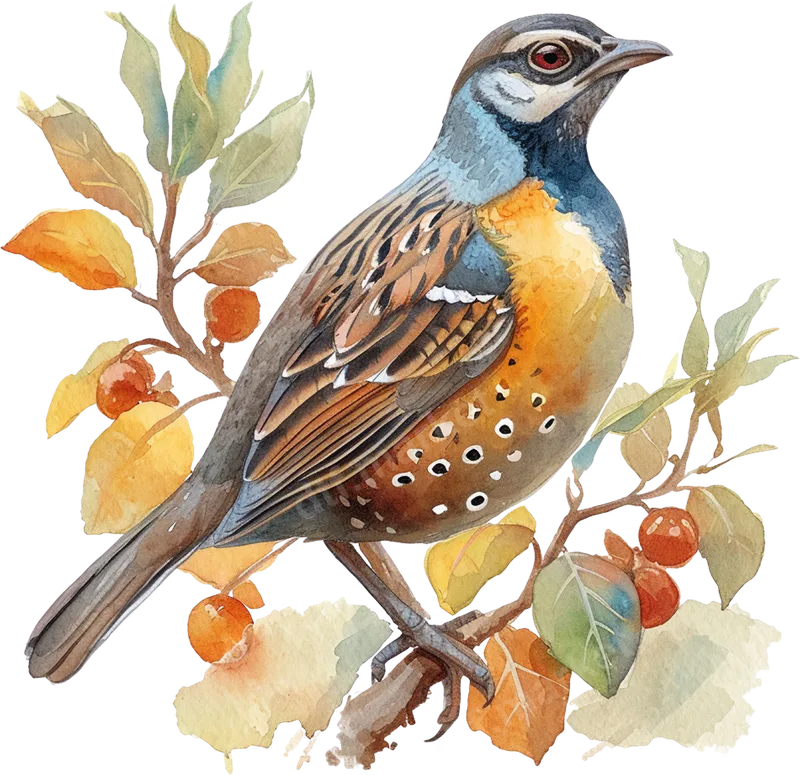 Watercolor Bird on Autumn Branch DTF Transfer - Nature Art