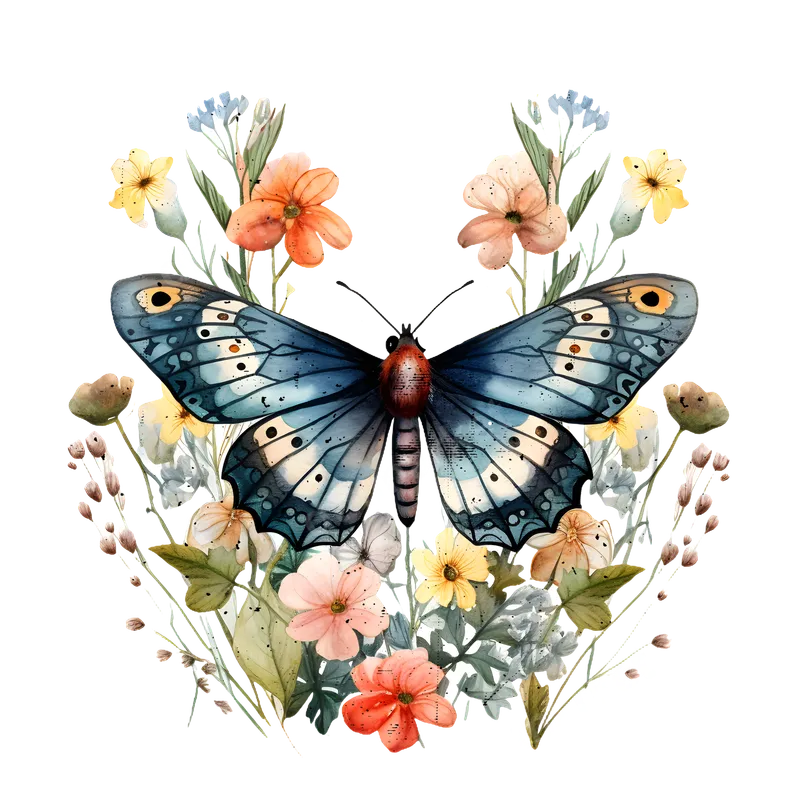Watercolor Blue Butterfly & Wildflower Floral DTF Transfer