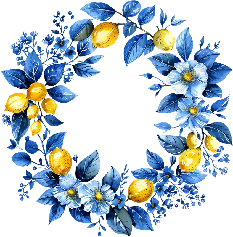 Watercolor Blue Floral Lemon Wreath DTF Transfer | Ready to Press Design