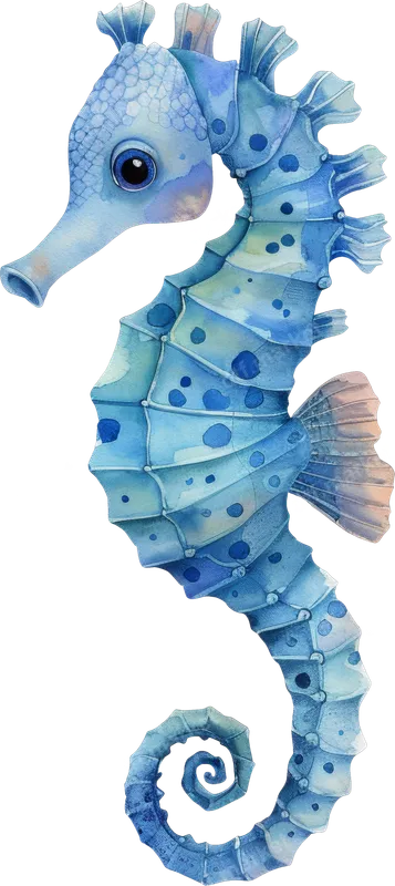 Watercolor Blue Seahorse DTF Transfer - Ready to Press Ocean Life Design
