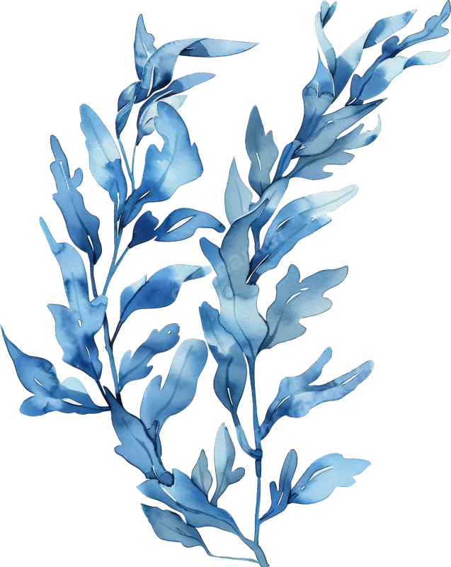 Watercolor Blue Seaweed Leaves DTF Transfer | Ocean Botanical Design