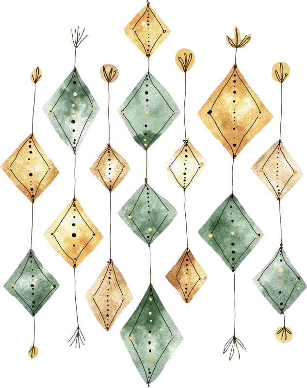 Watercolor Boho Diamond Garland DTF Transfer | Earthy Green Gold Abstract Design