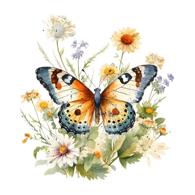 Watercolor Butterfly & Wildflowers DTF Transfer | Ready to Press Floral Design