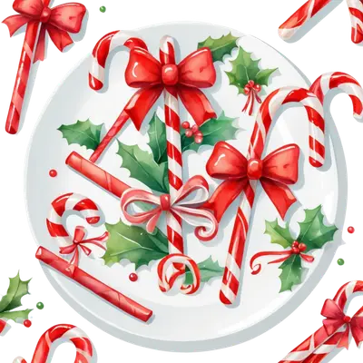 Watercolor Candy Cane Holly DTF Transfer - Festive Christmas Design