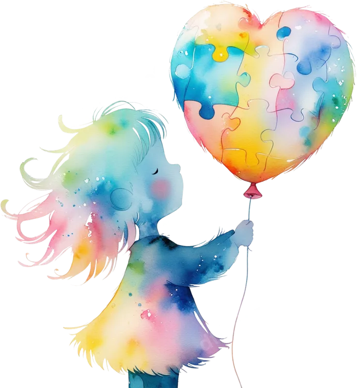 Watercolor Child Puzzle Heart Balloon DTF Transfer