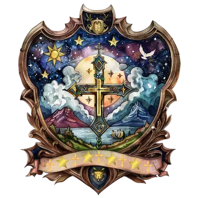 Watercolor Christian Cross Shield Celestial DTF Transfer