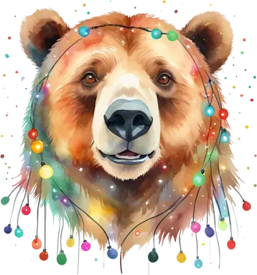 Watercolor Christmas Bear DTF Transfer with Holiday Lights