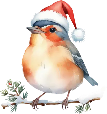 Watercolor Christmas Bird Santa Hat DTF Transfer | Ready to Press