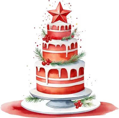 Watercolor Christmas Cake DTF Transfer - Tiered Holiday Design