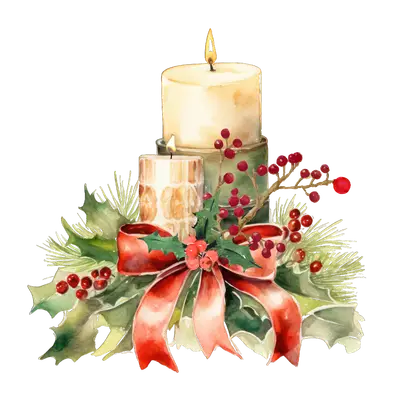 Watercolor Christmas Candles DTF Transfer | Holly & Berries