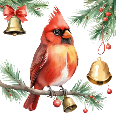 Watercolor Christmas Cardinal DTF Transfer - Holiday Bird Heat Press Design