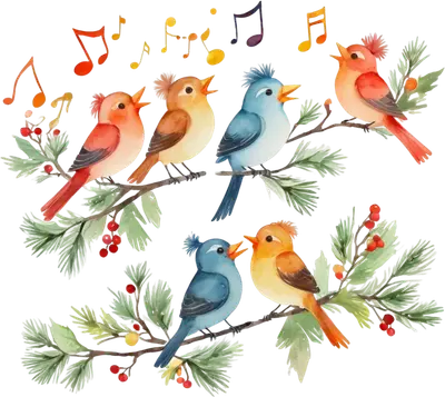 Watercolor Christmas Caroling Birds DTF Transfer for Apparel