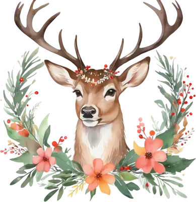 Watercolor Christmas Deer DTF Transfer with Berries & Flowers
