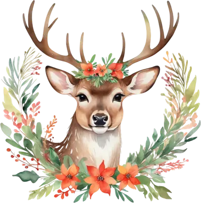Watercolor Christmas Deer & Poinsettia Wreath DTF Transfer