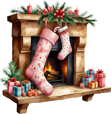 Watercolor Christmas Fireplace Stockings & Gifts DTF Transfer