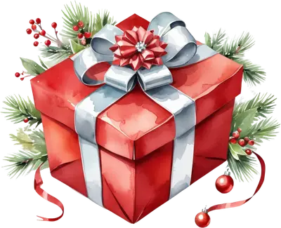 Watercolor Christmas Gift Box DTF Transfer | Festive Present