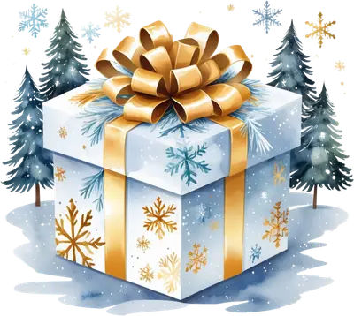 Watercolor Christmas Gift Box DTF Transfer - Winter Snowflakes