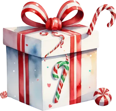 Watercolor Christmas Gift Box DTF Transfer with Candy Canes