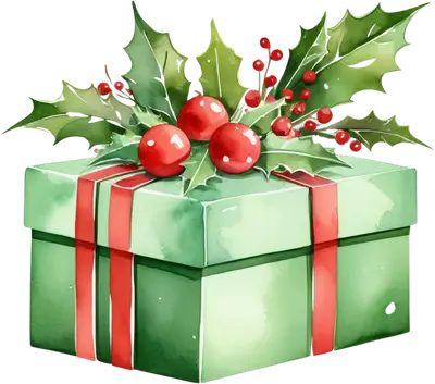 Watercolor Christmas Gift Box Holly Berries DTF Transfer