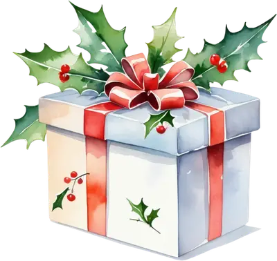 Watercolor Christmas Gift Box with Holly DTF Transfer