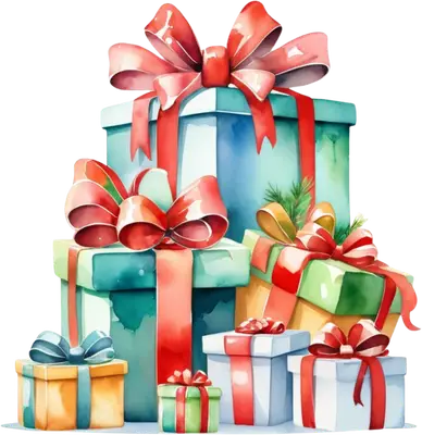 Watercolor Christmas Gift Stack DTF Transfer | Holiday Presents Design