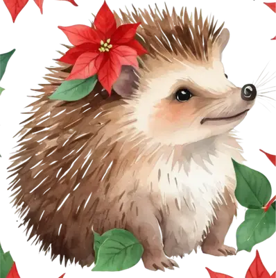 Watercolor Christmas Hedgehog Poinsettia DTF Transfer
