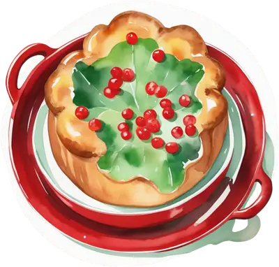 Watercolor Christmas Pastry DTF Transfer | Holly Berry Dessert Design