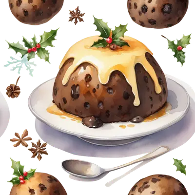Watercolor Christmas Pudding DTF Transfer - Festive Holiday Dessert