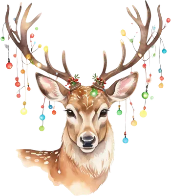 Watercolor Christmas Reindeer with Holiday Lights DTF Transfer
