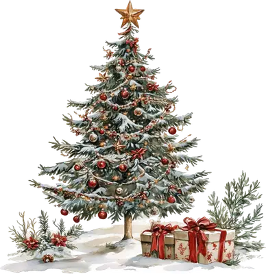 Watercolor Christmas Tree DTF Transfer with Presents