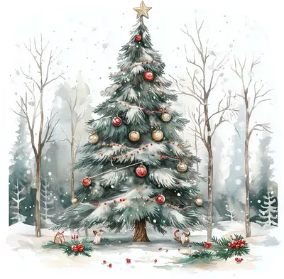Watercolor Christmas Tree Snowy Forest DTF Transfer