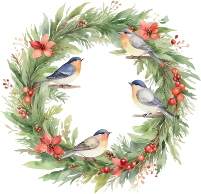 Watercolor Christmas Wreath with Birds DTF Transfer