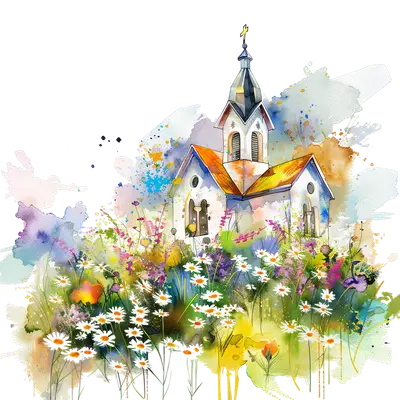 Watercolor Church & Daisies DTF Transfer - Artistic Faith Design