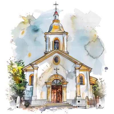 Watercolor Church with Cross DTF Transfer - Artistic Faith Design