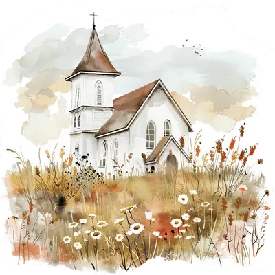 Watercolor Country Church DTF Transfer | Rustic Faith Design