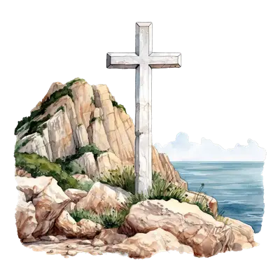 Watercolor Cross on Cliff DTF Transfer | Faith & Nature Design