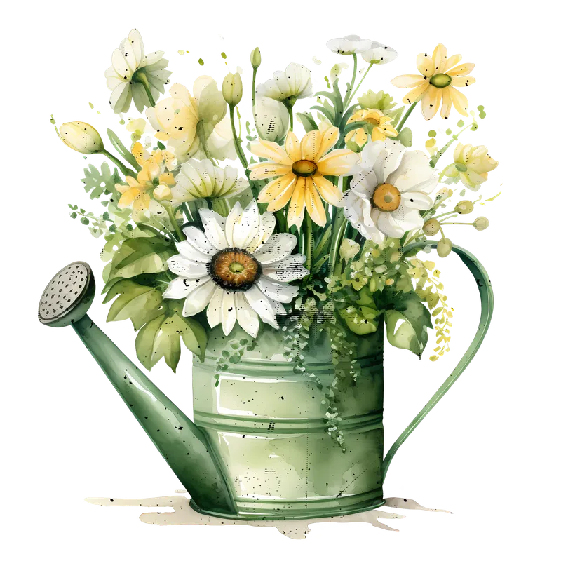 Watercolor Daisy Chamomile Bouquet Watering Can DTF Transfer