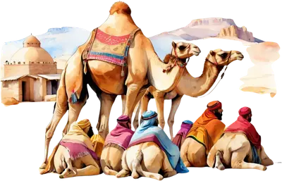 Watercolor Desert Camels & Travelers DTF Transfer