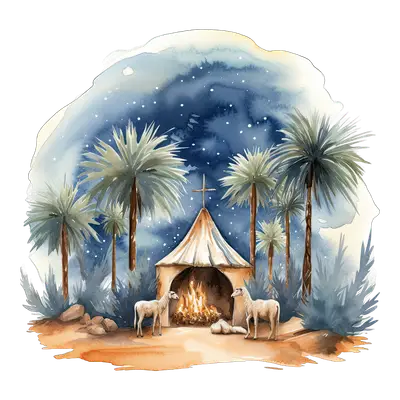 Watercolor Faith Scene DTF Transfer - Desert Campfire & Lambs