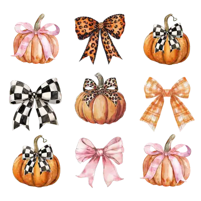 Watercolor Fall Pumpkins & Bows DTF Transfer Collection