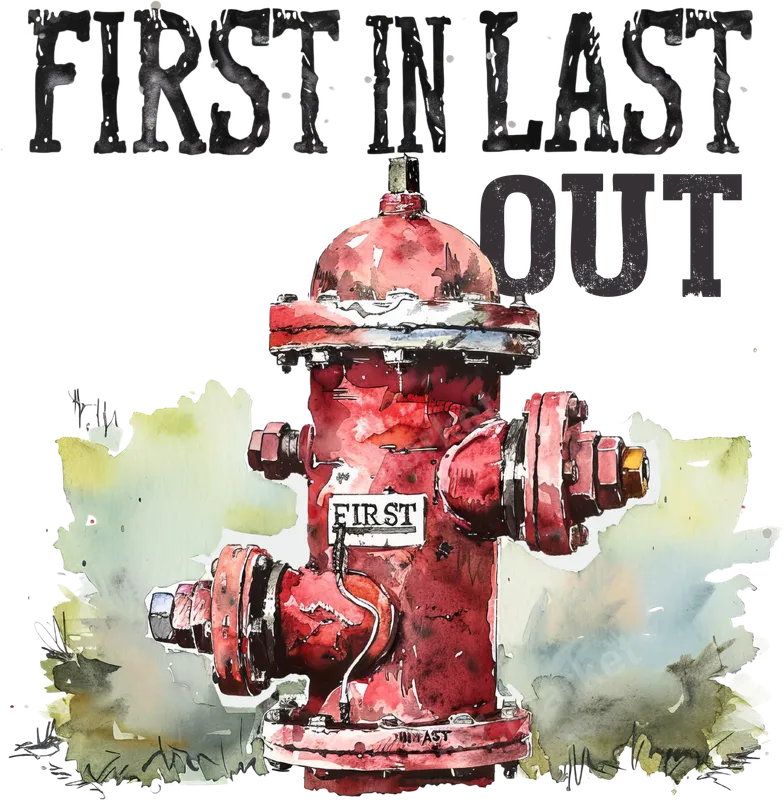 Watercolor Fire Hydrant DTF Transfer | First In Last Out Firefighter
