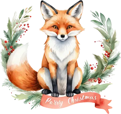Watercolor Fox Christmas Wreath DTF Transfer | Ready to Press Holiday Design